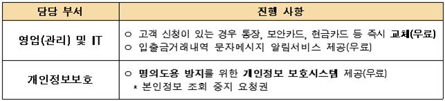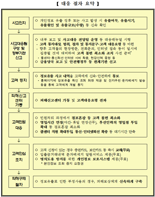 | [1] | 개인정보 유출에 따른 후속 조치 중 고객 불편 최소화 대책 시행 |