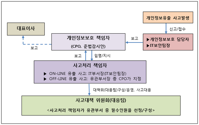 | [1] | 본 매뉴얼은 개인정보 유출이 발생했을 경우 피해 최소화를 위한 회사의 신속하고 효율적인 상황대응을 세부적으로 규정함 |