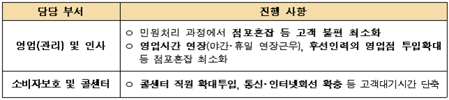 | ○ | 고객 및 언론 응대, 신속한 의사결정 등을 위해 관련 부서로 구성된 비상대책반 구성ㆍ운영 필요 |